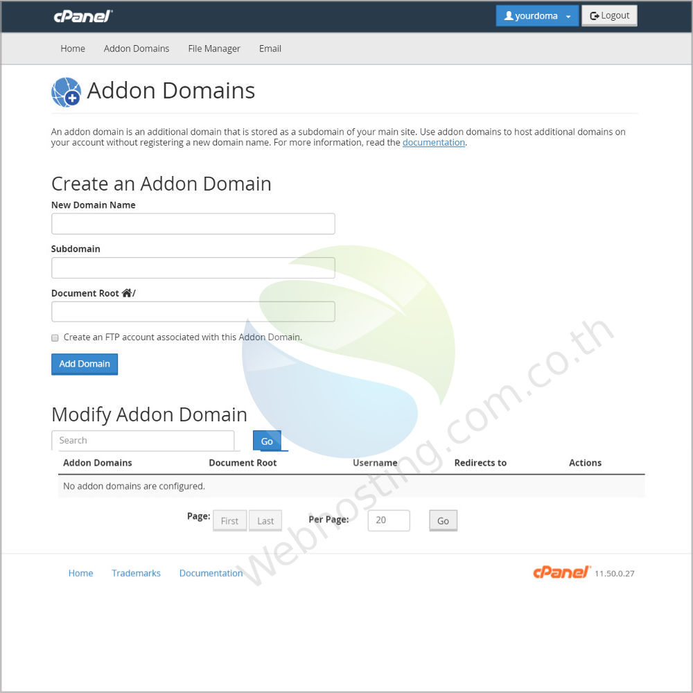 คุณสามารถกำหนด การใช้พื้นที่เว็บไซต์ (web hosting) ร่วมกันมากกว่า 1 โดเมน