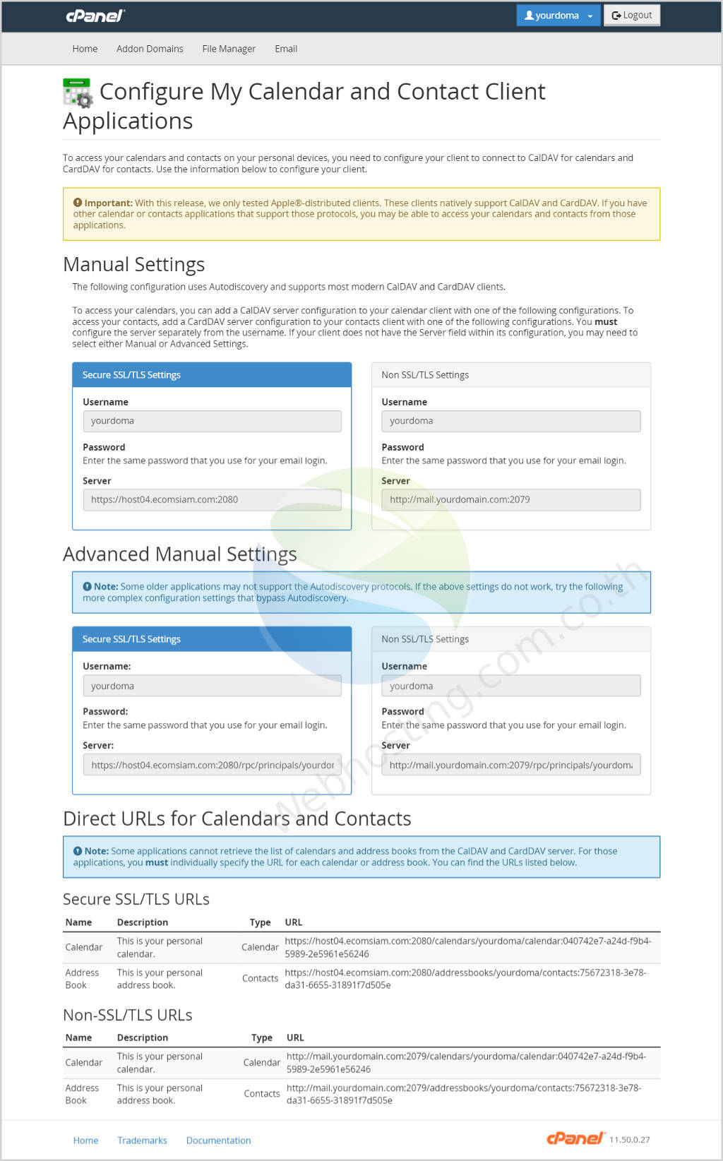 Cpanel - calendars and contacts/ configuration