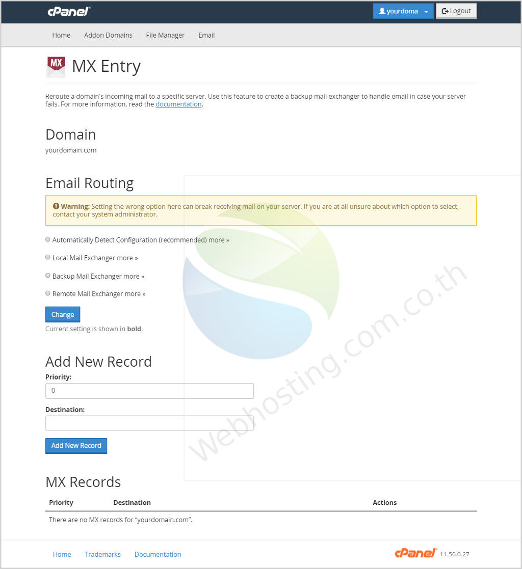 Cpanel - mx entry